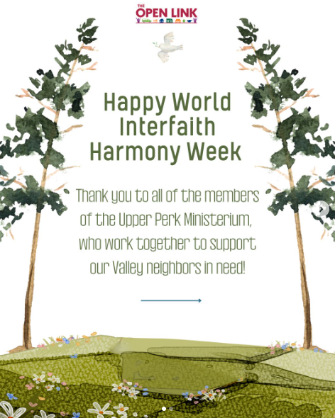 In the Valley, we are so grateful to be a part of the Upper Perk Ministerium, which recognizes the importance of interfaith dialogue, community building, and local action throughout the entire year. The Upper Perk Ministerium has helped found The Open Link, regularly supports our organization year-to-year, and helps to meet the needs of our Valley's community members most in need.
